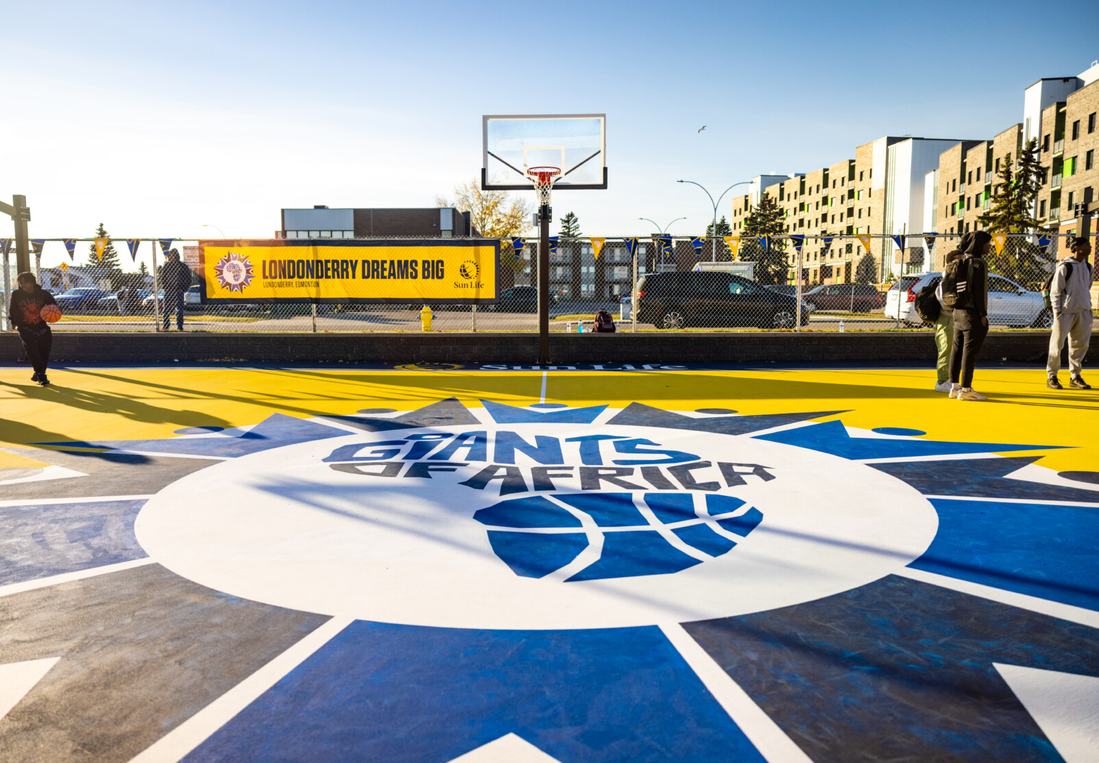 Sun Life, Giants of Africa and the Toronto Raptors partnered together on a mission of improving the lives of youth through basketball. As a foundational court partner in 2022, we partnered with the Londonderry School in Edmonton, Alberta, which thrives on its rich diversity, where the shared passion for sports and basketball unites youth from diverse backgrounds. The design of this court symbolizes the school’s interconnectedness among students, teachers, and staff. The elements tell a story of empowerment, resilience, and personal growth, creating a spirit of limitless possibilities.